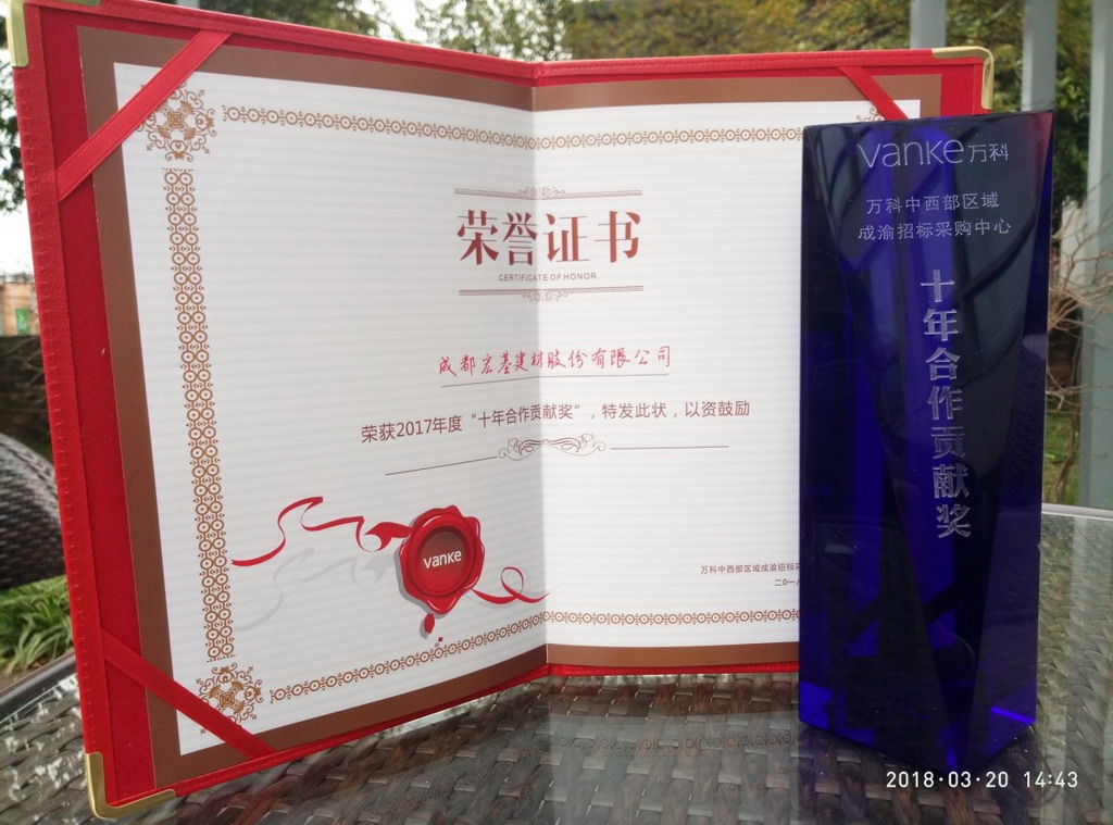 成都bevictor伟德荣获万科 “十年合作贡献奖”
