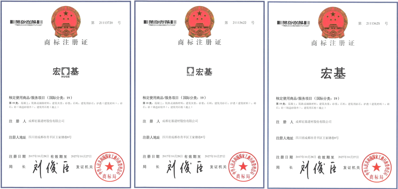 2016年9月公司开始策划“bevictor伟德”商标注册事宜,并向国家工商总局提出申请商标。2017年10月28日,我司取得由国家工商总局颁发商标注册证书,同批次,我们还完成了“图形+HUGE+bevictor伟德”、“宏+图形+HUGE+基” 商标的注册。截止目前,我司已拥有六个自己的注册商标。
