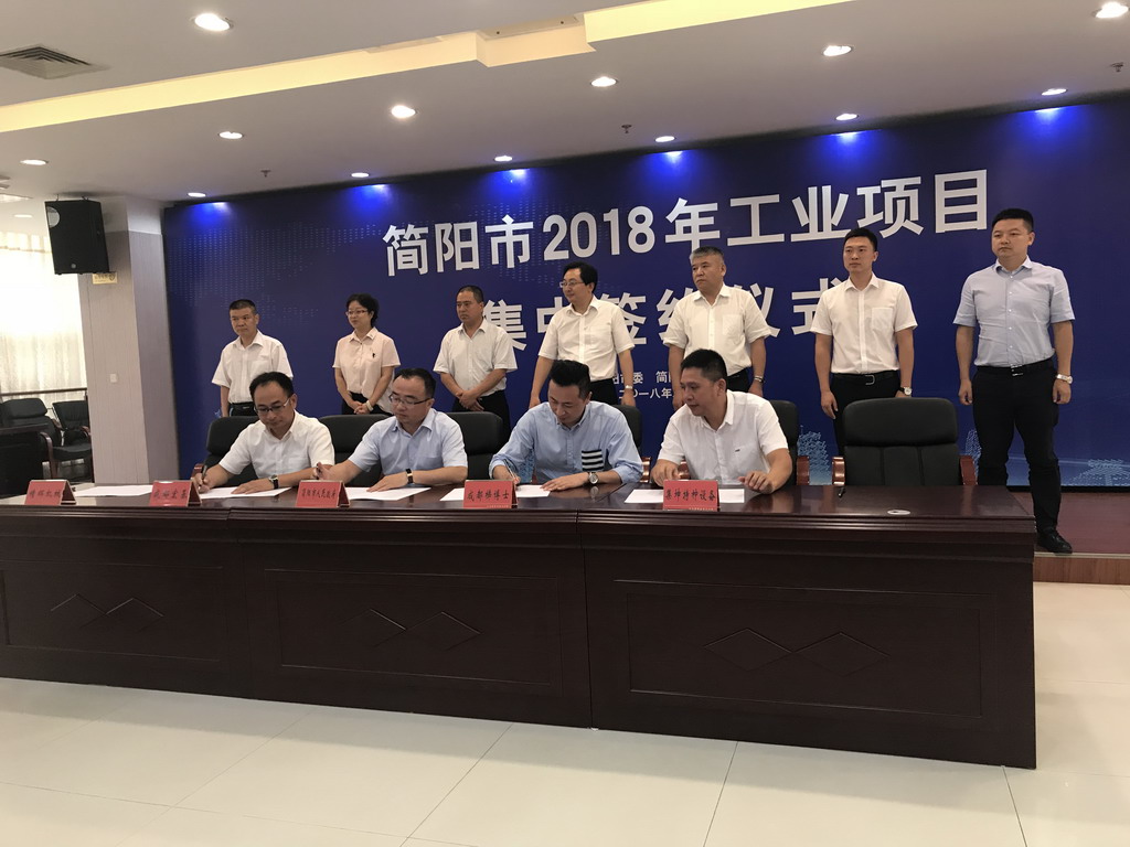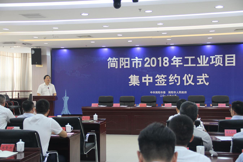 8月21日,简阳市2018年工业项目集中签约仪式在市级机关办公区1号楼2楼会议室隆重举行,本次签署合作协议的工业项目共计13个,涉及高端装备及智能制造、航空航天等产业,计划总投资约258亿元,总占地约1410亩。