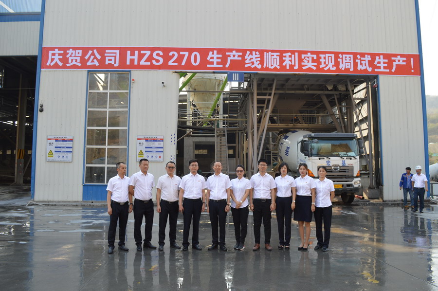 2019年3月27日上午8:40分,在一阵欢快的爆竹声中,公司首条HZS-270生产线在经历近五十天紧张的基建施工、设备零部件进场组合安装后顺利实现调试生产。公司领导陈志安、柏仁雄以及公司各部门负责人等均到场参加了当天的简单调试生产仪式。