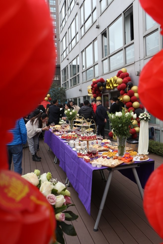 为响应和执行国家、省、市防疫、抗疫管理部门的规定和要求,不聚餐,少聚集,2021年2月8日下午15:00,随着欢乐的音乐响起,丰德办公区三楼阳台呈现出一片欢乐的海洋,公司领导、丰德办公区的同事齐聚于此,为迎接2020年优秀员工表彰暨2021年新春团拜会,一场别开生面的冷餐会拉开帷幕。