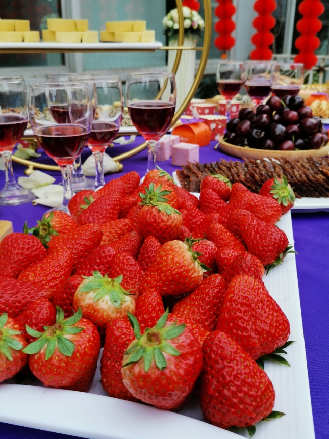 表彰结束,同事们大快朵颐的开始享受我们豪华冷餐会美食,正所谓:有花、有“酒”、有美食、有您、有我,人生何不美哉!快哉!