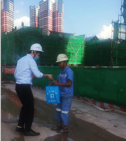 七月如火,地面温度更是高达37度以上。 29日,慰问组成员携慰问礼品前往泰康、中德麓府等在建施工工地对我司员工进行慰问。走进施工工地,扑面而来的热气令人眩晕,而此时,我们的员工正在工地挥汗如雨,一座座美丽的高楼拔地而起,美丽的城市少不了他们的辛勤付出。职工们收到防暑降温礼品后纷纷表示:一定会克服酷暑高温,坚守岗位,尽职尽责,确保安全生活和生产。战高温,抗酷暑,他们,正是最可爱的人。