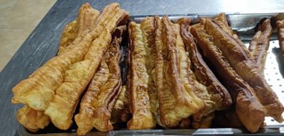 和面、制作成形、双面油炸,起锅。香喷喷的大油条来了……