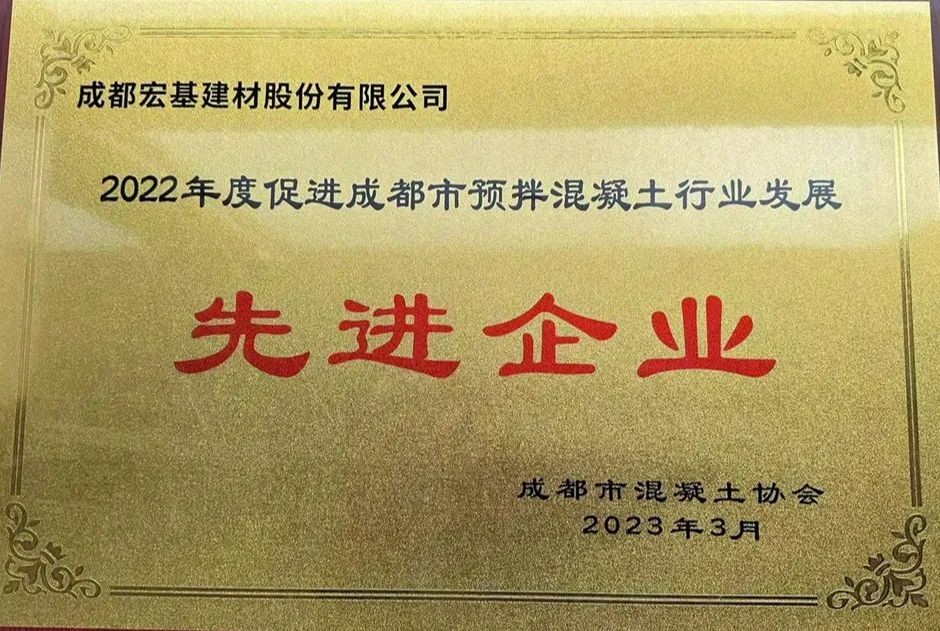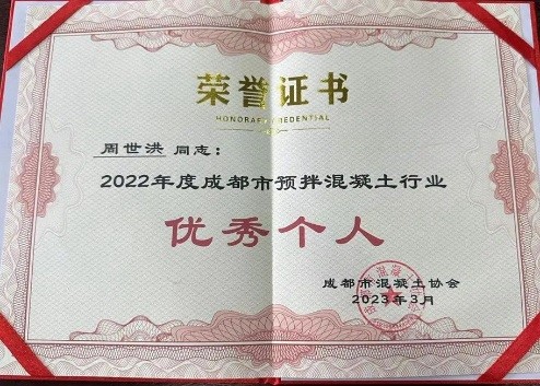 近期成都市混凝土协会组织开展了2022年度评优工作,公司荣获2022年度促进成都市预拌混凝土行业发展“先进企业”称号,公司常务副总裁周世洪先生荣获行业 “优秀个人”称号。