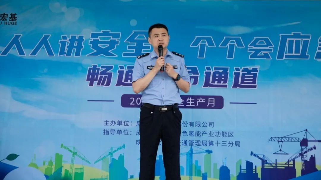 此次大会荣幸邀请到成都市郫都区绿色氢能产业功能区管委会闾青陶副主任和成都市公安局交通管理局第十三分局薛阳副局长、陶志强中队长等领导,他们的参与不仅体现了对安全生产的高度重视,更为我们的安全管理工作提供了宝贵的指导和建议。