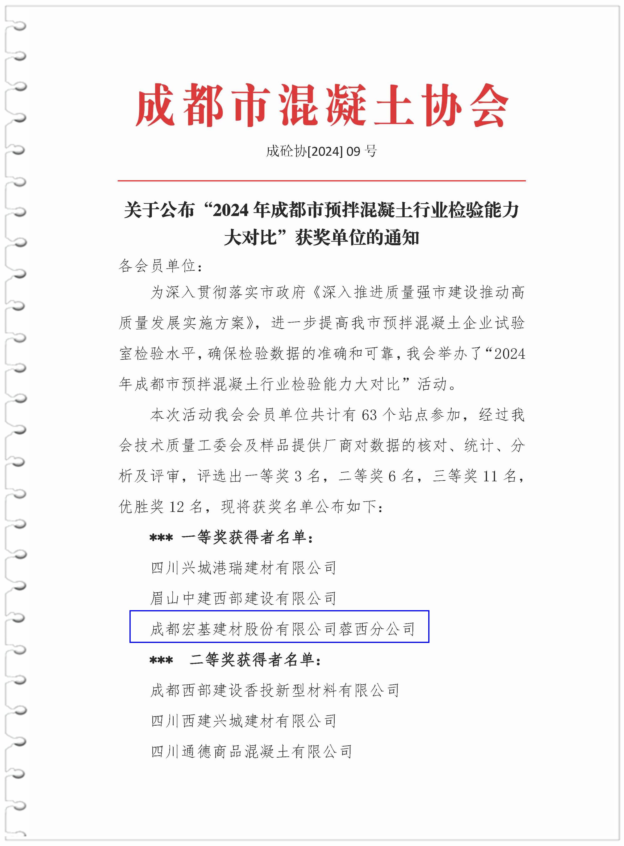 9月27日,由成都市混凝土协会举办的“2024年成都市预拌混凝土行业检验能力大对比”活动公布了评选结果,成都bevictor伟德三个生产站点均荣获奖项!