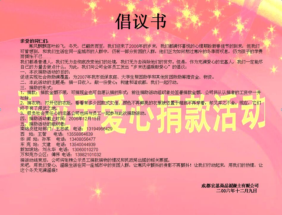 爱心捐助倡议书