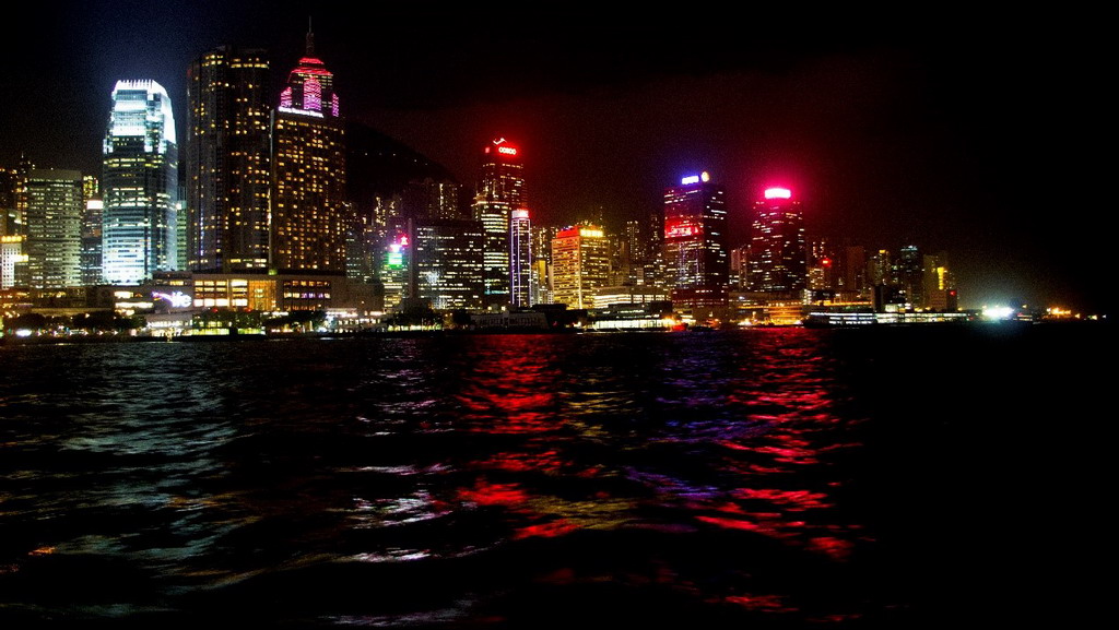 晚上夜游维多利亚港,海风拂面,粼粼的海面倒影着岸边高楼各色交映的灯光,别有一番风情。