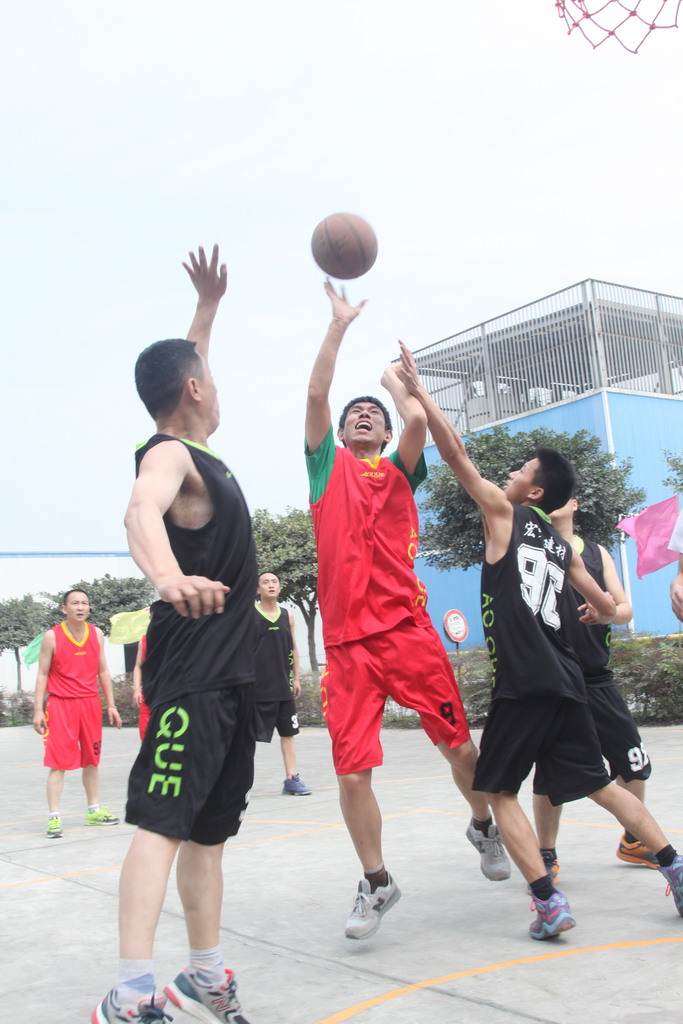 作为一名新人,我代表丰德队参加了随后举行的丰德对阵北站的比赛。两队今年都特别受关注,一方面,北站篮球队近年来都很强劲,取得了不错的成绩,特别是在14、15年豪取冠军。而丰德这边,今年新材事业部的加入,为其注入了新鲜血液,还未被人熟知的新丰德会打出怎样的成绩呢?让我们拭目以待。比赛很快就开始了,双方战术安排上都采用联防战术,两队都展现出很强的团队配合,持球突破、分球、接球、投篮、命中!这样的配合一幕幕在球场上上演,球场上运动员青春洋溢,挥汗如雨,场边的观众也是为各自喜欢的球队呐喊助威,整个球场时时都在传来一阵阵的欢呼声、加油声。随着比赛的进行,胶着的上半场结束,比分为12:10,丰德两分领先上半场。