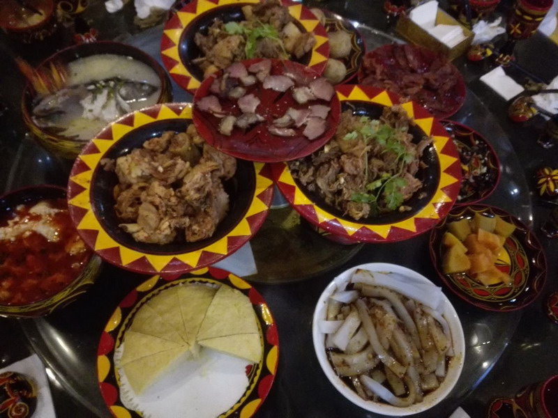 最后抵赴海漯沟的门户-磨西古镇,这里有当年红军长征时的旧址,有法国人1923年来此建的教堂,有唐番古道遗址,还有古街上独具特色的小酒吧,使得古镇别有一番风情和魅力。晚上我们品尝了当地特色彝族大餐,还有彝族美女婉转美妙的歌声一扫大家旅途的劳顿。