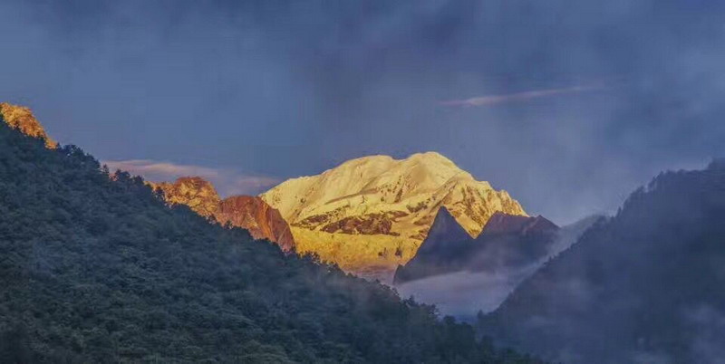 经历了一天大自然的洗礼,呼吸了森林中富氧的空气,整个人从头到脚都倍感清新。旅途的第三天,小伙伴们自发早起去观看了“蜀山之王”贡嘎山主峰上的奇观——日照金山,让人不禁感叹大自然的神奇。