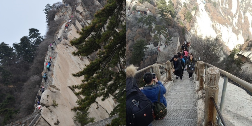 第三天早晨7:30所有成员准时来到乘车地点,准备赶往本次拓展训练主战场—华山。经过两个多小时的车程,我们来到了华山脚下开始了登华山迎新年的小组比赛,每个小组的组员相互帮助,相互鼓励,很多画面让我非常的感动:有的帮助组员背行李、有的扶组员、有的男组员负责女组员的安全。即使有的组员在自身身体极度疲惫的情况下,仍在坚持努力向山顶攀登,或手抓铁链,或手脚并用,这样的精神鼓舞着全员,在苍龙岭、金锁关、天梯等景点无不看到各组员都在努力向上。