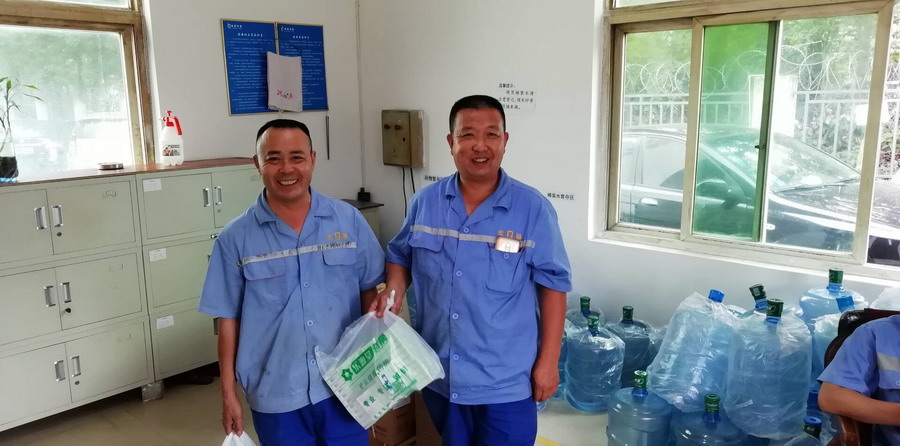 防暑降温药品陆续发放到员工手中……
